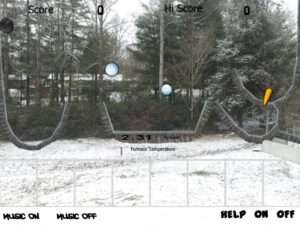 There are 8 boxes at the bottom of the screen, and falling from the left and right you have parts of a snowman, two snowballs, hat, coal and a carrot. The idea being you catch it, and drag it down to the box, as you do, a piece appears in the box, get all the pieces the snowman starts to dance, click it, you’ll get points.