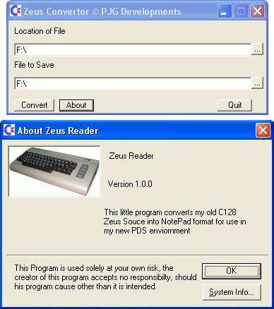 This was a little program I decided to write because I had a load of Zeus128 source code, from my old PDS system and I needed to convert it into simple TXT format for new coding environment.